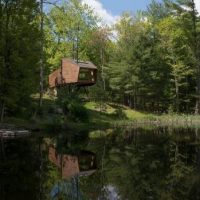 Whether one wants to enjoy a good novel, go swimming or take in the stupendous views, the Willow Treehouse, just 15 minutes from the town of Woodstock in New York, proves to an amazing escape. Overlooking the pond, this futuristic wooden building was designed