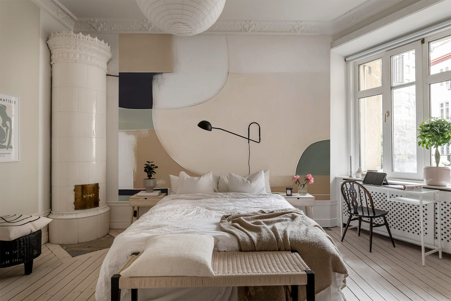 If you love standout designs or bold colours but worry they might overpower the room, try using the wallpaper on the top half of the wall—it softens the impact while still making a statement!