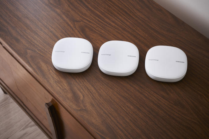 The SmartThings Smart Outlet and Water Leak, Motion, and Multipurpose sensors have also been upgraded, although the press materials Samsung provided elaborate only on the Motion sensor. That device has been redesigned with a magnetic ball mount that allows you to adjust the sensor’s tilt angle to cover a wider field of view. The company is also introducing a new SmartThings Button, which can be programmed to trigger control routines around the home without the need to open the SmartThings app. The SmartThings Button will also monitor the temperature in the room that it’s in and can signal a compatible smart thermostat to adjust the temperature to heat or cool as needed.